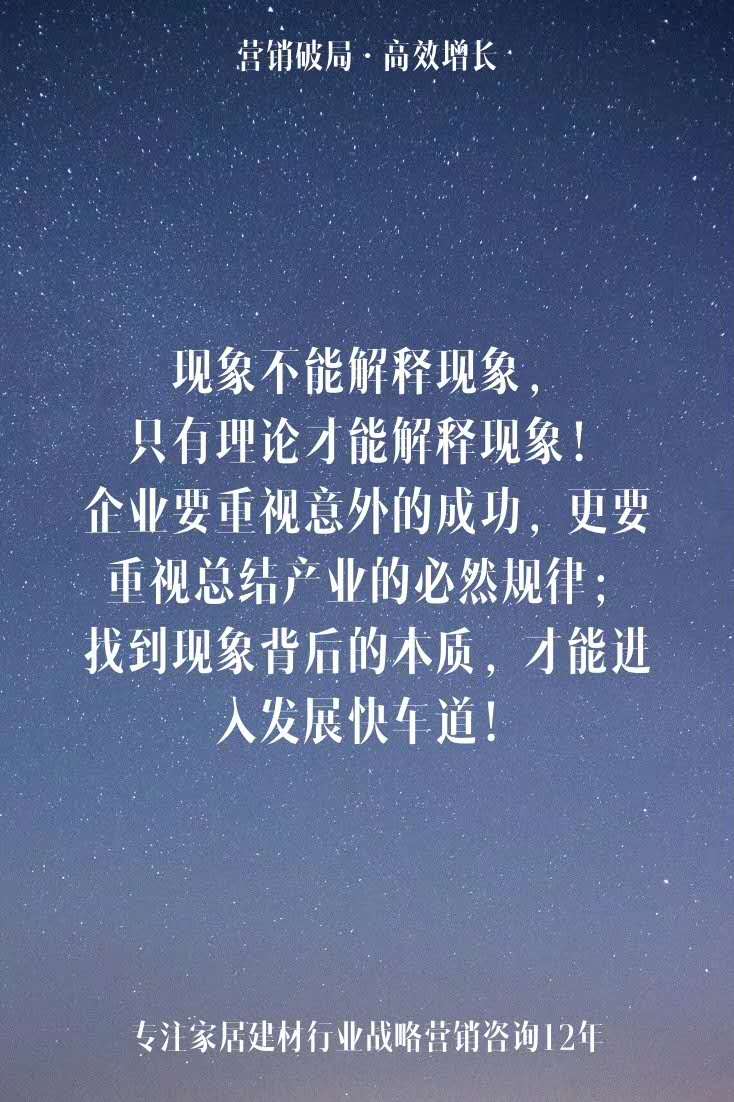 現(xiàn)象不能解釋現(xiàn)象,只有理論才能解釋現(xiàn)象!企業(yè)要重視意外的成功,更要重視總結產業(yè)的必然規(guī)律;找到現(xiàn)象背后的本質,才能進入發(fā)展快車道! |