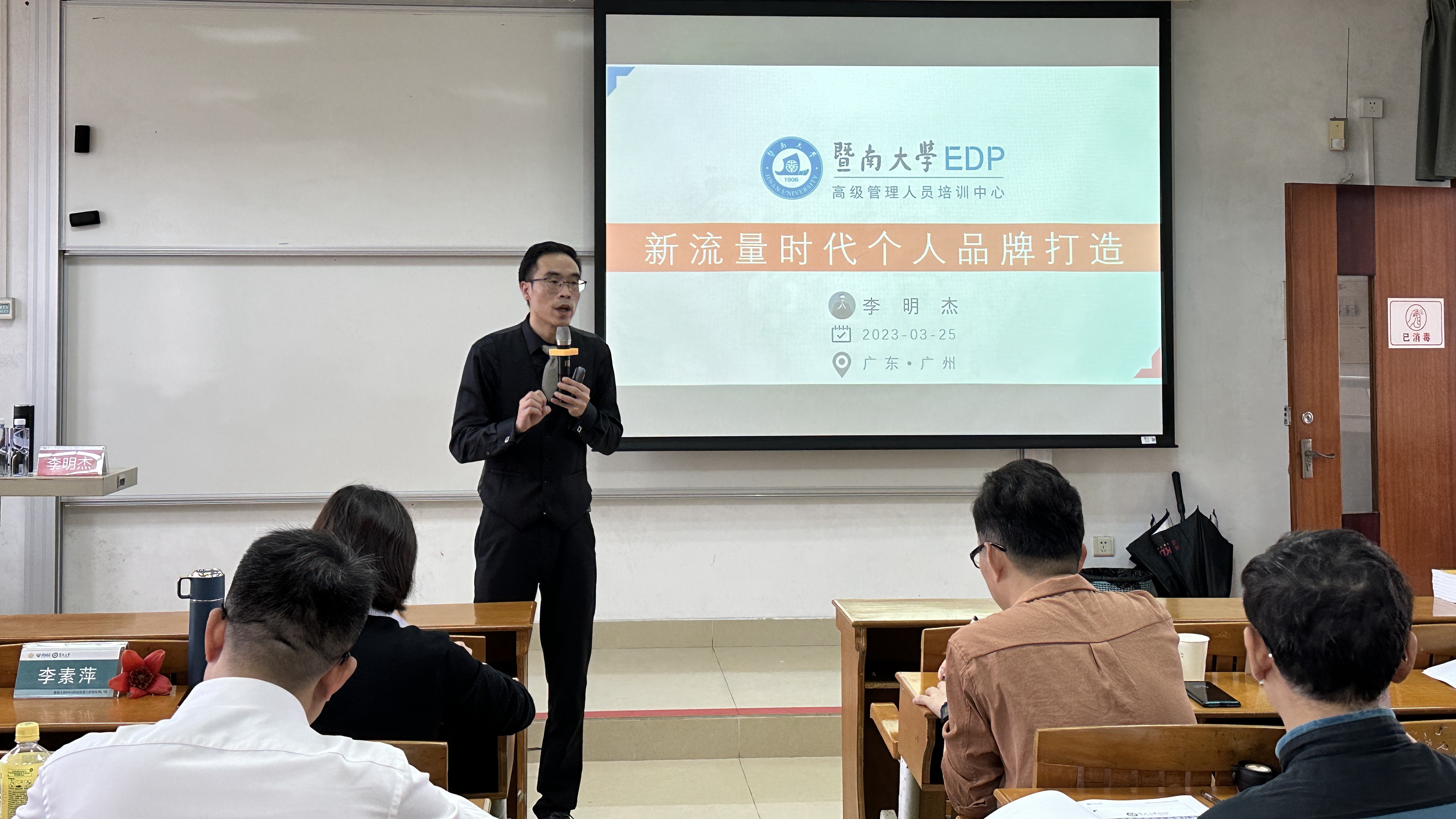 3月25日,暨南大學(xué)管理學(xué)院邀請(qǐng)李明杰老師為MBA職業(yè)經(jīng)理人研修班分享《新流量時(shí)代個(gè)人品牌打造》課程。