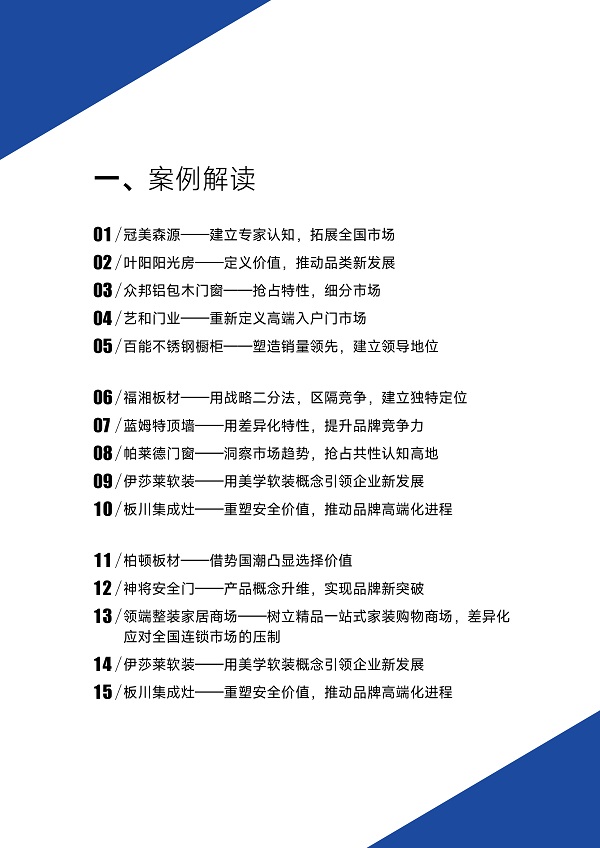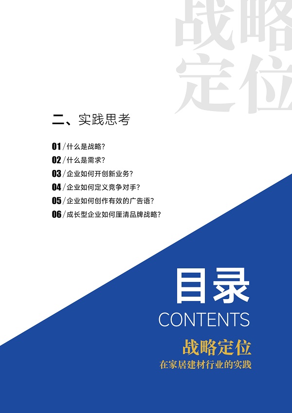 作者:劉登榜 (定向邀約內(nèi)測版) 前言 自2015年以來,我在和君智業(yè)推廣戰(zhàn)略營銷咨詢服務(wù)已過去8年時間,在這8年時間中,我們前后服務(wù)了60多家建材家居企業(yè)的全案咨詢,在每一個項目咨詢中,我們都運用了戰(zhàn)略定位的方法論和工具,不斷地深入實踐讓我們對戰(zhàn)略定位的認識和運用有了不一樣的見解。今年以來,我在各種場合分享我們戰(zhàn)略定位的案例成果,很多企業(yè)家朋友都希望我們把服務(wù)過的案例集結(jié)成冊與大家分享,所以我甄選了服務(wù)過的15家企業(yè)案例和6篇實踐思考文章,編輯成冊公開發(fā)行。 這些案例隨著不同的時間展開,我在回顧的過程當(dāng)中亦有優(yōu)化的思考,對之前的不足進行補充,希望能給家居建材行業(yè)的朋友們帶來真實的商業(yè)實踐知識,幫助大家運用戰(zhàn)略定位的工具贏得企業(yè)的成功。 劉登榜老師系統(tǒng)解讀戰(zhàn)略定位視頻,觀看請留言 |