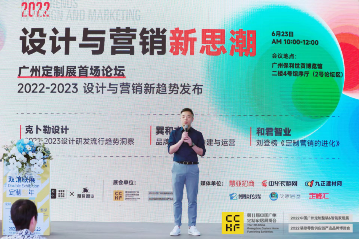 和君智業(yè):劉登榜老師 最后分享的嘉賓是來自本次聯(lián)合主辦單位和君智業(yè)劉登榜老師帶來《定制營銷的進化》的主題分享。劉登榜老師通過戰(zhàn)略營銷的步驟解碼定制家居頭部企業(yè)與中小型企業(yè)的不同營銷邏輯,同時講解了應對疫情后的市場聚焦策略。 以上三位主講嘉賓從產品設計到超級品牌IP到營銷進化的分享,相信很多行業(yè)伙伴對2022-2023年設計與營銷具體工作有了更多的操作思路。 接下來是我們今天的重磅節(jié)目《新思潮論壇》由七位行業(yè)嘉賓共同分享,我們接下來聽聽他們的觀點,看他們在一起能夠碰撞出什么樣的思想火花。