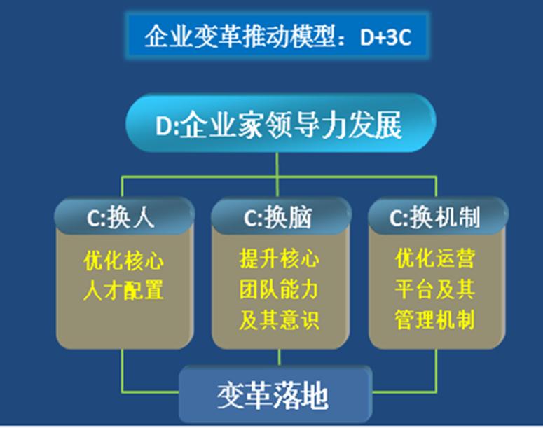 我們再來看看企業(yè)變革的問題:企業(yè)變革是一個復雜的系統(tǒng)工程,企業(yè)變革之所以復雜,因為涉及到企業(yè)核心競爭能力和優(yōu)勢的重構,這個重構的過程,就需要對企業(yè)家領導力按照企業(yè)戰(zhàn)略的需要進行針對性發(fā)展,對核心團隊進行必要調整,對骨干員工專業(yè)能力和工作優(yōu)意識進行針對性提升,同時對管理機制進行優(yōu)化。企業(yè)變革的推動模型,詳見下圖: