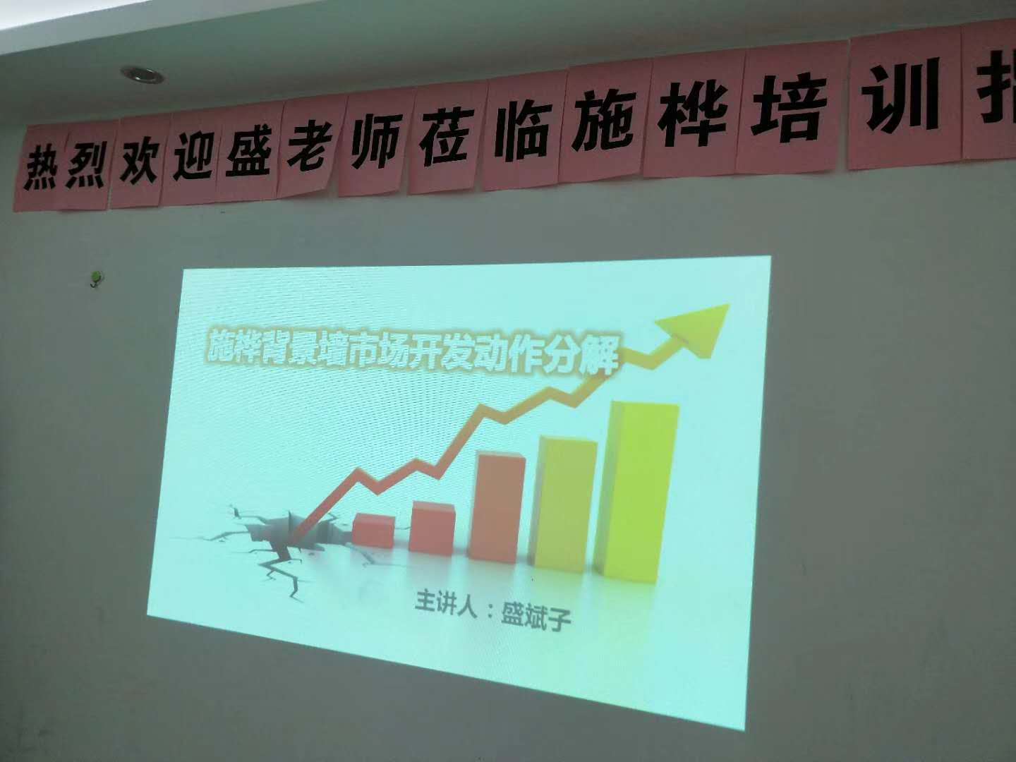 2018年6月2日,盛斌子老師受邀對(duì)施樺做《施樺背景墻市場(chǎng)開發(fā)動(dòng)作分解》的培訓(xùn)。咨詢式培訓(xùn)?培訓(xùn)式咨詢?不對(duì)!原來是教練式的培訓(xùn)!有知識(shí),有模板,有工具,有操作手冊(cè),有行動(dòng)計(jì)劃。施樺背景墻,小品類原來也有大市場(chǎng)。