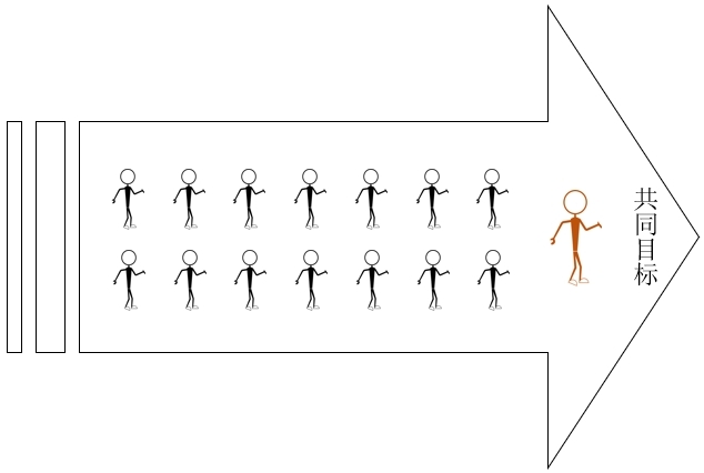而賦權(quán)型團(tuán)隊(duì)的特征是,全體人員目標(biāo)明確,隊(duì)員擁有一定的自由度,并具有自我管理的權(quán)利和能力,最前面的不一定是領(lǐng)導(dǎo)者(如圖)。賦權(quán)強(qiáng)調(diào)的是個(gè)體的多樣性和主動(dòng)性。在這樣的團(tuán)隊(duì)里,每一個(gè)人可以根據(jù)自己所處的環(huán)境,做出有利于共同目標(biāo)的判斷和決策。比如大學(xué),就是賦權(quán)組織的代表,它從助教到教授才4級(jí),且對(duì)學(xué)術(shù)方面的管理相對(duì)寬松和自由。