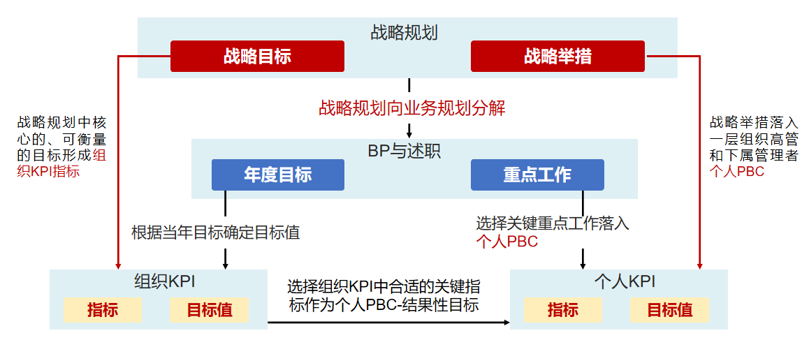 一.績效管理首先是要進(jìn)行戰(zhàn)略解碼。戰(zhàn)略解碼,基于戰(zhàn)略目標(biāo)解碼到關(guān)鍵任務(wù),到關(guān)鍵績效指標(biāo);描述戰(zhàn)略、衡量戰(zhàn)略、管理戰(zhàn)略。通過戰(zhàn)略解碼,將戰(zhàn)略目標(biāo)納入組織績效目標(biāo)及高管PBC。 二. 責(zé)任中心定位:組織績效,個人績效要源自戰(zhàn)略,上下對齊,確保戰(zhàn)略的一致性。各層組織KPI,要圍繞公司、業(yè)務(wù)單元及各區(qū)域的關(guān)鍵戰(zhàn)略落地,不能承載太多的“管理訴求”而導(dǎo)致KPI牽引不夠聚焦。 1. 公司對部門的訴求,作為組織績效的輸入; 2. 業(yè)務(wù)短板及管理訴求: 3. 針對業(yè)務(wù)短板制訂組織績效指標(biāo)。