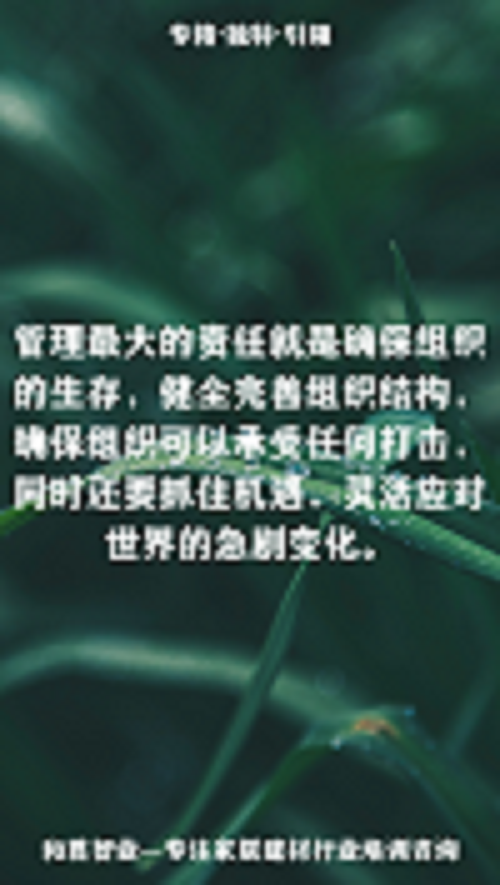 北京和君智業(yè)教育科技有限公司總經(jīng)理 2022中國百強(qiáng)講師 大商公司化運(yùn)營專業(yè)顧問 資深實(shí)戰(zhàn)派講師 戰(zhàn)略營銷語錄:確保組織生存!管理最大的責(zé)任就是確保組織的生存,健全完善組織結(jié)構(gòu),確保組織可以承受任何打擊,同時還要抓住機(jī)遇,靈活應(yīng)對世界急劇變化。