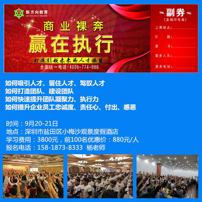 單位可能開除有能力的員工,但對一個忠心耿耿的人,不會有領導愿意讓他走,他會成為單位這個鐵打營盤中最長久的戰(zhàn)士,而且是最有發(fā)展前景的員工。--新方向教育企業(yè)內(nèi)訓15818738333楊曉林
