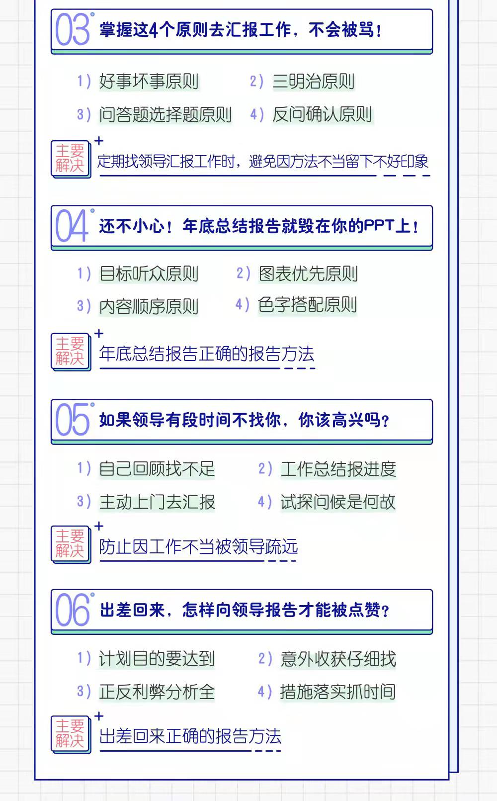 ◇ 定期找領(lǐng)導(dǎo)匯報(bào)工作時(shí),避免因方法不當(dāng)留下不好印象