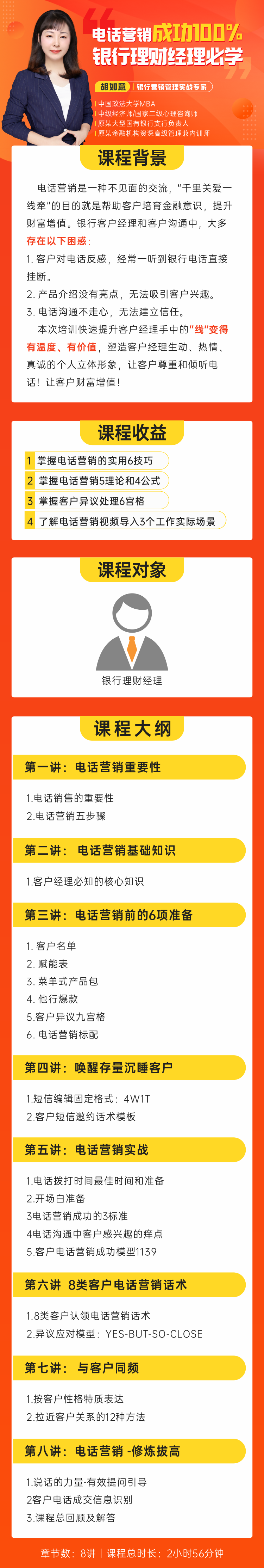 本次培訓快速提升客戶經(jīng)理手中的"線"變得有溫度、有價值,塑造客戶經(jīng)理生動、熱情、真誠的個人立體形象,讓客戶尊重和傾聽電話!讓客戶財富增值!