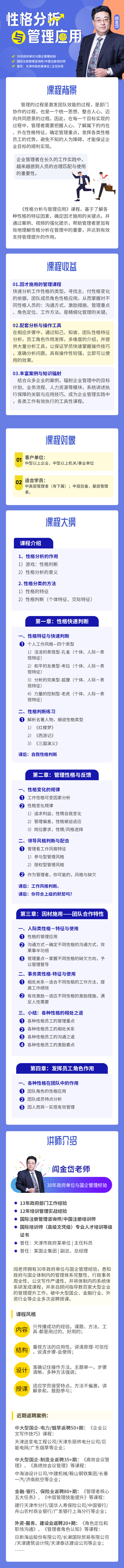 閻老師擁有30年政府單位與國企管理經(jīng)驗,悉知政府與國企體制內(nèi)的管理體系完整性、行政事務(wù)周全性、公文寫作嚴謹性、并將體制內(nèi)的系統(tǒng)體系研發(fā)成課程,并親自顧問指導(dǎo)數(shù)百家大型企業(yè)的管理提升工作,被中大型國企、金融行業(yè)、外資行業(yè)等企業(yè)多次返聘授課。