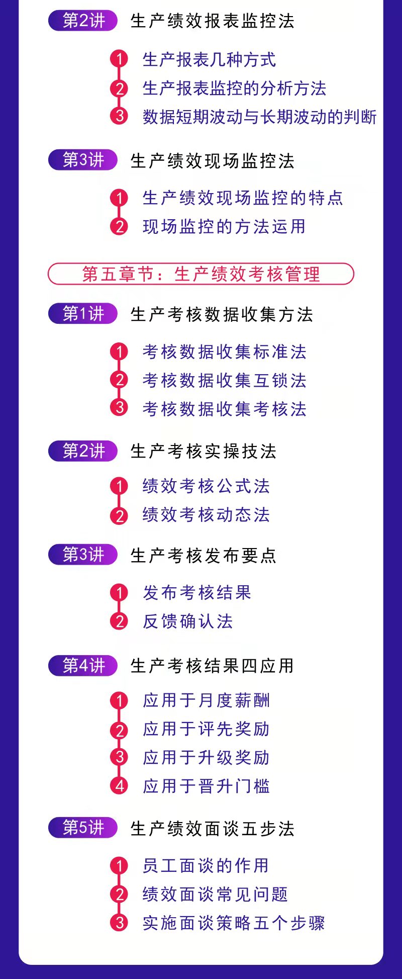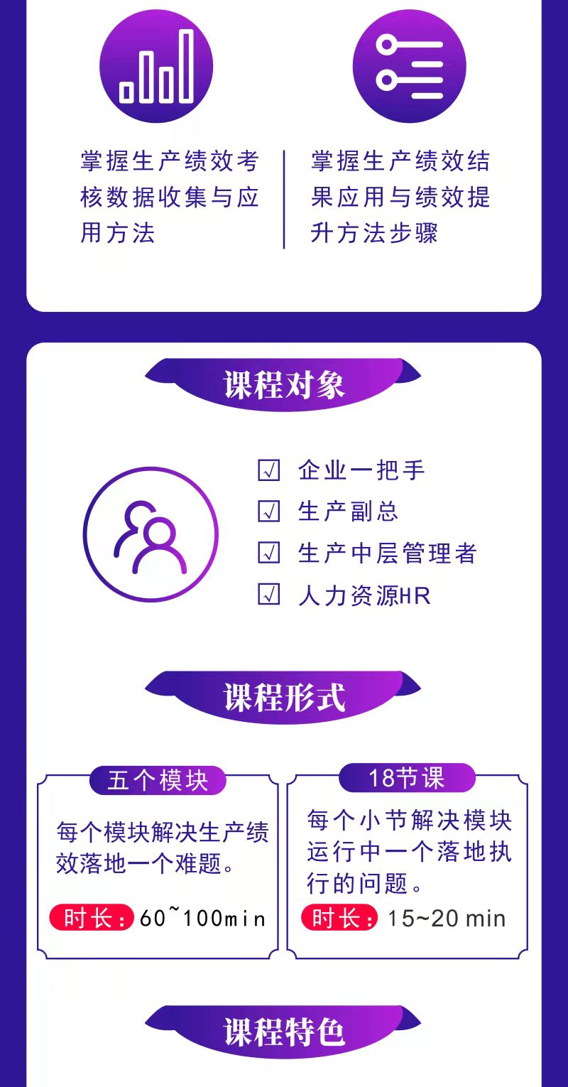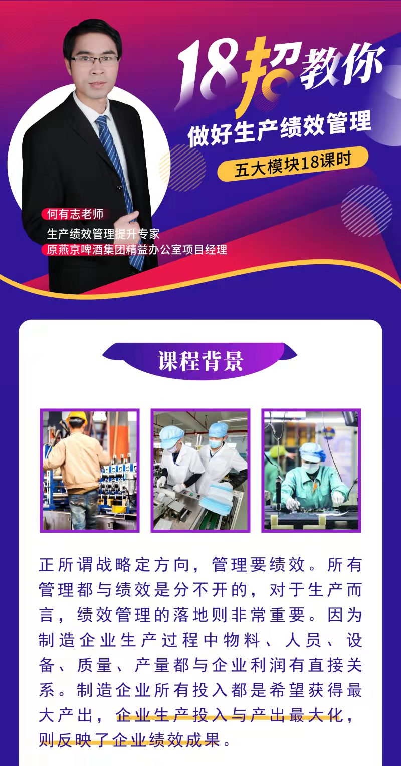 從生產(chǎn)績效整體到細節(jié)執(zhí)行,環(huán)環(huán)相扣,每一個課題解決一個問題,以問題、場景、痛點、原理、方法逐步循序漸進,打通生產(chǎn)績效管理落地的“任督二脈”