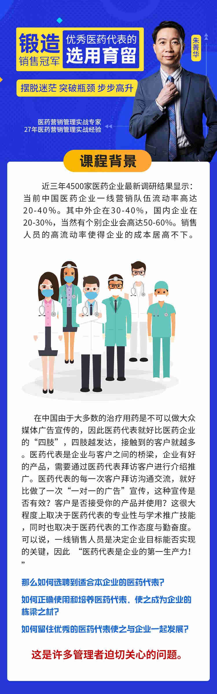 朱老師在92年就步入醫(yī)藥營銷行業(yè),曾多次帶領(lǐng)團(tuán)隊將藥品銷售額排行提升10倍以上。
