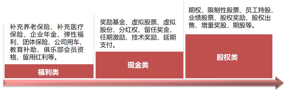 股票期權(quán) 股票期權(quán)指上市公司授予激勵(lì)對(duì)象在未來一定期限內(nèi)以預(yù)先確定的價(jià)格和條件購買本公司一定數(shù)量股票的權(quán)利。激勵(lì)對(duì)象有權(quán)行使這種權(quán)利,也有權(quán)放棄這種權(quán)利,但不得轉(zhuǎn)讓、抵押、質(zhì)押、擔(dān)保和償還債務(wù)。其四大要素:受益人或擁有者(高級(jí)經(jīng)理);設(shè)定有效期(5—8年);約定協(xié)議購買價(jià)格(行權(quán)價(jià));數(shù)量適當(dāng)(總量不超過流通股10%,初次不超過1%)。三大特點(diǎn):權(quán)力而非義務(wù);授予的是期權(quán)價(jià);不能免費(fèi)獲得。 限制性股票 采用定向增發(fā)模式,以低于二級(jí)市場(chǎng)上的價(jià)格授予激勵(lì)對(duì)象一定數(shù)量的公司股票;授予價(jià)格或價(jià)格確定方法由董事會(huì)下設(shè)的薪酬與考核管理委員會(huì)確定,價(jià)格法定下限為市場(chǎng)價(jià)格的50%。該種激勵(lì)方式下,激勵(lì)對(duì)象需要自籌資金購買公司股票。 股票增值權(quán) 向激勵(lì)對(duì)象授予獲得一定時(shí)期內(nèi)一定數(shù)量公司股票市場(chǎng)價(jià)值增長的權(quán)利,被授予股票增值權(quán)的激勵(lì)對(duì)象可獲得增值權(quán)在發(fā)放日至行權(quán)日增值部分的價(jià)值。 增值權(quán)是模擬股票期權(quán)的一種模式,以現(xiàn)金兌現(xiàn)股票價(jià)格的增值。一般適用于不能持有上市公司股票的人員。