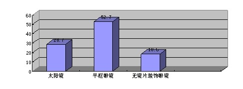 通過對框架眼鏡裝飾類型的調(diào)查,參與調(diào)查的129人中有52.7%的人選擇了平框眼鏡,28.7%的人選擇太陽鏡,18.6%的人選擇無鏡片裝飾眼鏡。由此數(shù)據(jù)看出,平框眼鏡在湖職院的市場較大。