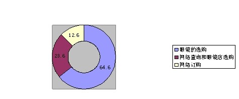 在對參與調(diào)查框架裝飾眼鏡選擇的購買方式的127人中,有64.6%的人選擇的是眼鏡店選購,有23.6%的人選擇網(wǎng)絡(luò)查詢和眼鏡店選購,還有12.6%的人選擇了網(wǎng)絡(luò)訂購。數(shù)據(jù)表明,眼鏡店購買還是存在很大的優(yōu)勢的。