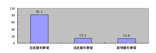 通過調(diào)查發(fā)現(xiàn),在所選的151人中,有82.1%的人會選擇隱形眼鏡的近視眼鏡,12.6%的人選擇隱形眼鏡的裝飾眼鏡,13.2%的人選擇隱形眼鏡的遠視眼鏡,由此數(shù)據(jù)看,隱形眼鏡中的近視眼鏡占了絕對的優(yōu)勢。