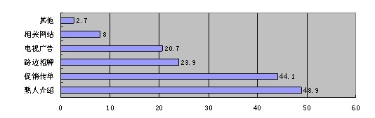 通過調(diào)查,對于眼鏡銷售信息獲得渠道,在參與調(diào)查的188人中,有48.9%的人是熟人介紹,44.1%的人是促銷傳單,23.9%的人是路邊招牌,20.7%的人是電視廣告, 8%的人是相關(guān)網(wǎng)站,還有2.7%的人是其他渠道獲得信息的。