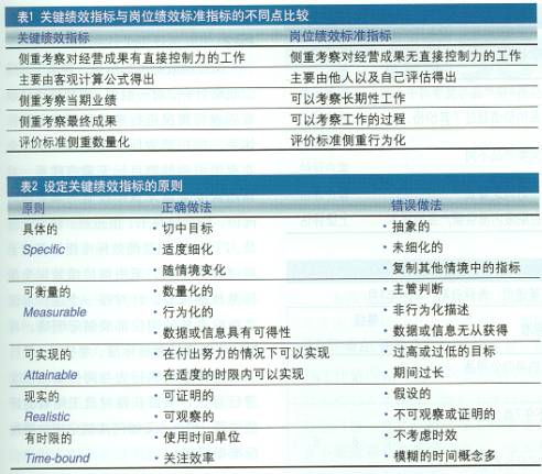績效評估是一個系統(tǒng),包括績效考核指標(biāo)的設(shè)定、績效信息的收集和績效結(jié)果的反饋等過程。在這個過程中,績效考核指標(biāo)的設(shè)定構(gòu)成了績效評估的基礎(chǔ)和依據(jù),其設(shè)定的科學(xué)、全面、有效性與否直接關(guān)系到績效評估的客觀性和公正性。因此,設(shè)定一個科學(xué)、全面、有效的績效考核指標(biāo)體系就成為績效評估工作的重中之重。兩種考核指標(biāo)的特點(diǎn):