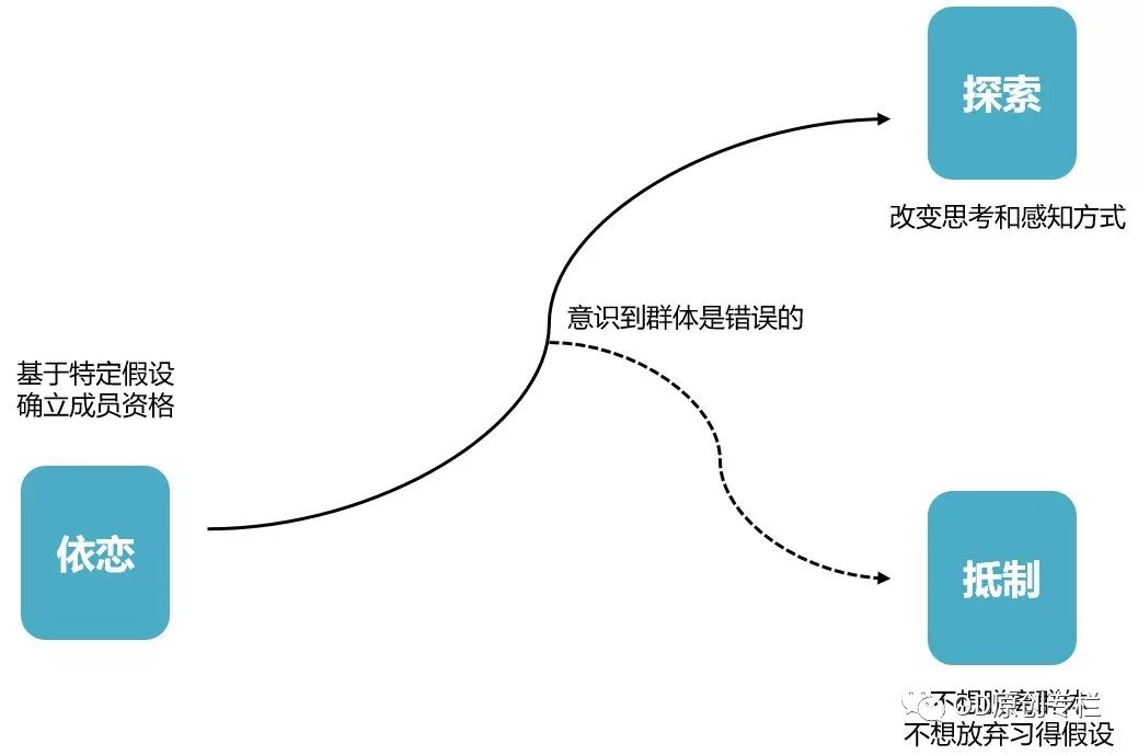 第二條路徑——抵制之路:從對舊知的依戀模式走向對新知的探索。如果群體意識到過往的思考模式是錯誤的,就會促發(fā)群體改變思考和感知世界的方式。