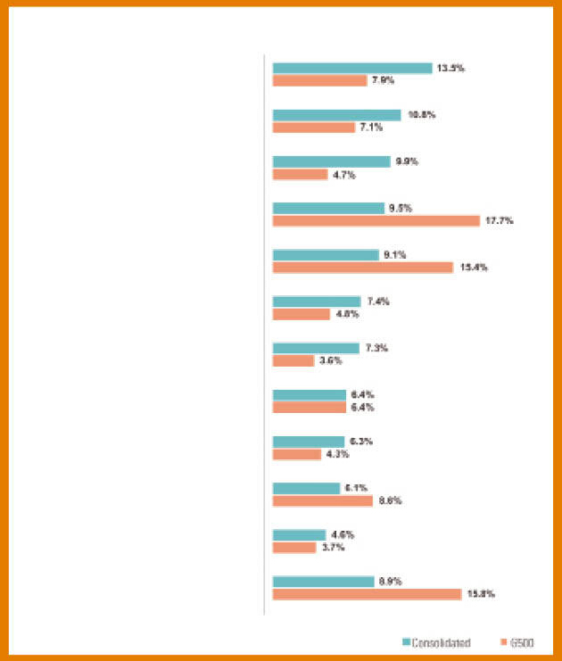 據(jù)數(shù)據(jù)顯示,13.5%的培訓(xùn)內(nèi)容是針對管理與督導(dǎo)類的,6.3%的培訓(xùn)師關(guān)于高管培訓(xùn)的。企業(yè)強制類的培訓(xùn)占到10.8%,流程類培訓(xùn)占到9.9%。這一數(shù)據(jù)充分顯示了:領(lǐng)導(dǎo)力培訓(xùn)始終是企業(yè)關(guān)注的熱點,包括中高層能力與素質(zhì)的提高,基層管理者的能力建設(shè)等。