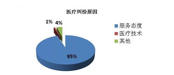 優(yōu)質(zhì)服務(wù)早已經(jīng)被醫(yī)院視為至關(guān)重要的一個環(huán)節(jié),醫(yī)院發(fā)生醫(yī)患糾紛主要成因也大都是因為服務(wù)態(tài)度,而治療效果不明顯等只是誘因。導(dǎo)致雙方關(guān)系正式撕破,開始拳腳相向一般都是因為服務(wù)態(tài)度原因。從下表我們可以看出服務(wù)態(tài)度在醫(yī)療糾結(jié)中所占的比重。